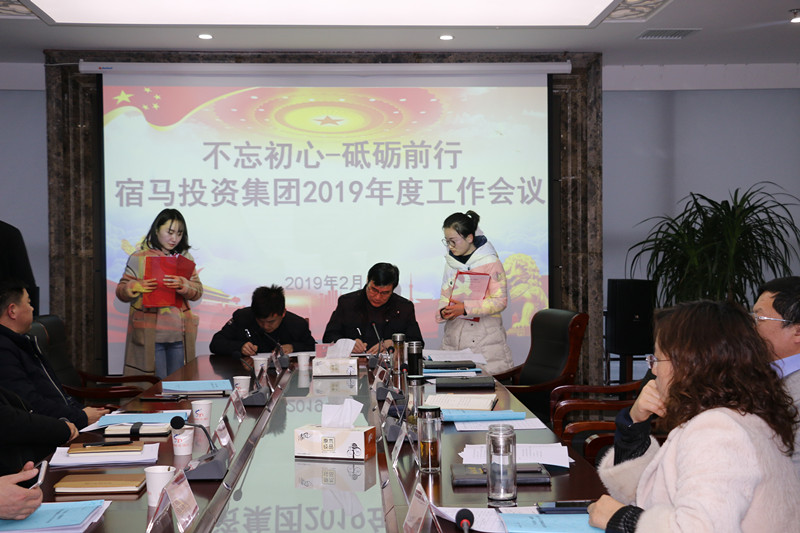 会上,集团公司总经理助理金圣熙同志通报《集团公司2018年度工作开展情况及部署2019年工作》,着重分析了2018年度公司各项工作开展情况,存在的不足以及新的一年公司各项工作要求和部署。12家控(参)股公司分别汇报了本公司2018年工作开展情况及2019年工作计划。同时,为进一步明确各部门、各子公司责任和任务,增强工作紧迫感,确保公司各项工作目标得以顺利实现,集团公司同各子公司签订2019年度经营目标责任书,同各部门签订2019年度工作任务责任书,同两党支部签订党建工作目标责任书,同各部门、各子公司签订党风廉政建设责任书。