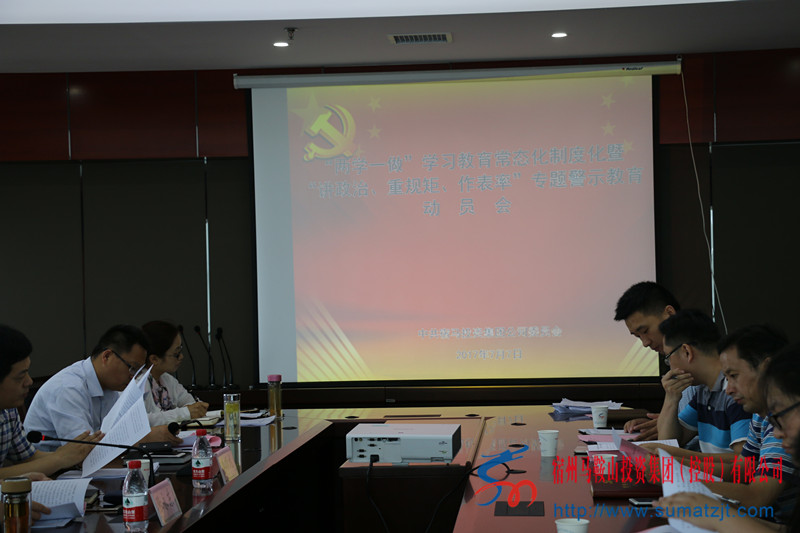 张永东强调,开展好警示教育活动,一要深刻领会好开展专题警示教育的重要意义。在集团全体党员重点是中层以上领导干部中开展“讲政治、重规矩、作表率”专题警示教育,是坚决落实党中央决策部署的看齐行动,是深入推进“两学一做”学习教育常态化制度化的重要抓手,是严肃党内政治生活、加强政治文化建设、净化优化政治生态的现实需要。 二要按步骤推进教育活动三个阶段的目标任务。警示教育分为警醒、警觉、警戒“三警”教育,第一阶段,重点抓好理论学习、开展现场教育、对照反思检查三个方面工作,以学思提高促进思想政治上的高度警醒;第二阶段重点抓好专题研讨会、对照检查、专题民主生活会三项工作,以查摆问题促进思想政治上的高度警觉;第三阶段,按照明确任务改、突出重点改、建章立制改的要求,以整改建制促进思想政治上的高度警戒。三要成立专题警示教育活动领导小组,明确主要负责人为组长,分管领导为副组长,有关人员为成员。四是努力确保专题警示教育取得实效。集团党委和各部门、各控股子公司、各党支部主要负责同志要有更高标准、更高要求,既要学在前、更要做在前,从严从实参加专题警示教育,真正把自己摆进去,以警示教育促工作作风转变,以工作作风转变推进bv伟德国际1946集团公司持续健康发展,以优异的成绩迎接党的十九大胜利召开。(杨瑞艳)