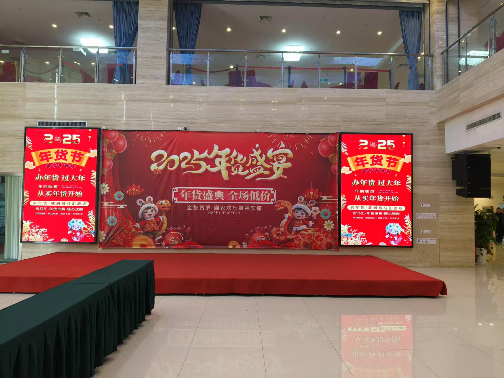 一是商品选择。秉持严格的筛选标准,积极与周边优质供应商展开洽谈,年货商品涵盖酒水、粮油、奶制品、零食等各种品类,满足不同客户群体需求。二是场地规划。利用新改造的宴会大厅,给参展商家划分展销区,有食品区,酒水饮料区,干货区等,陈列各类特色年货。三是宣传预热。在厅内外悬挂灯笼、横幅、彩灯等营造浓厚活动氛围。通过抖音、微信、QQ、电子屏等方式发布年货节信息,介绍优惠活动和特色商品,引发了广泛关注和转发。